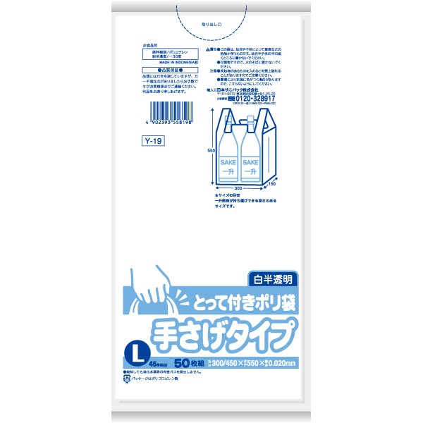 ◇ 日本サニパック とって付きポリ袋L 白半透明 50枚入 Y-19 ポリ袋 ゴミ袋 レジ袋 ビニール袋 取っ手付き 掃除 キッチン リビング