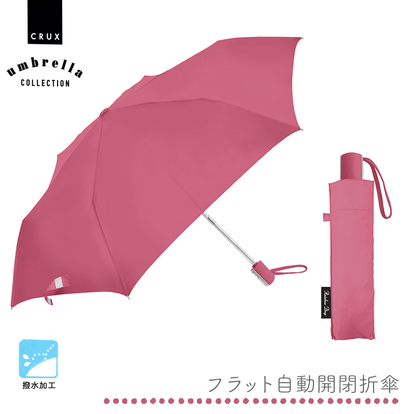 ■ 傘 CRUX フラット自動開閉折畳傘 RPK 55cm 31614 はっ水加工 かわいい 自動 ワンタッチ 折り畳み ピンク 4935124316149