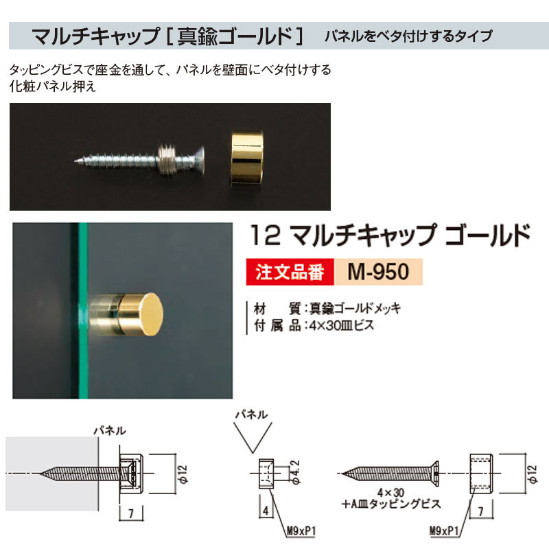 [法人宛ノミ]12 マルチキャップ ゴールド M-950 1ヶ 真鍮ゴールド アルモード ベルク パネルをベタ付けするタイプ パネルアタッチメント