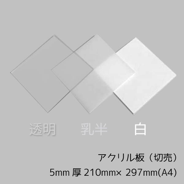 アクリル板 透明/乳半/白 5mm厚 210mm×297mm A4サイズ カット売り