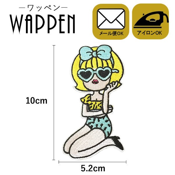 ワッペン おしゃれ アップリケ 刺繍 アイロン 女の子 ハート サングラス ガール メール便可
