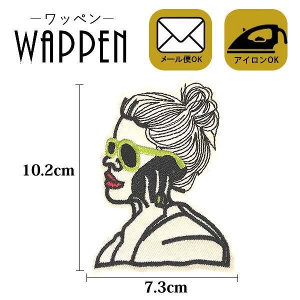 ワッペン 刺繍 アイロン おしゃれ アップリケ ガール 女性 縦10.2cm×横7.3cm メール便