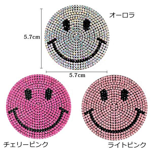 ワッペン ストーン アイロン アップリケ スマイル ニコちゃん キラキラワッペン キャラクター メール便