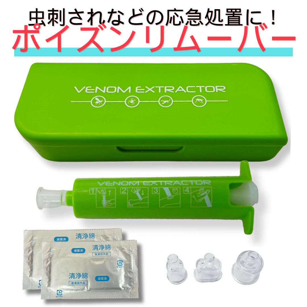 ポイズンリムーバー 清浄綿 セット 毒吸引器 強力吸引 虫 蚊 ハチ アブ ヒル アウトドア 応急処置 コンパクト カップ付き 携帯ケース付