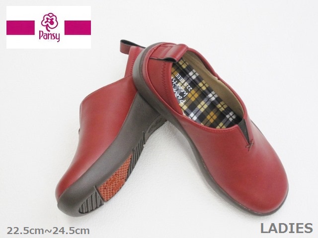 Pansy パンジー 1520 軽量 4E ゆったり 2WAY 防滑 おしゃれ カジュアル Laシューズ 赤 22.5cm〜24.5cm