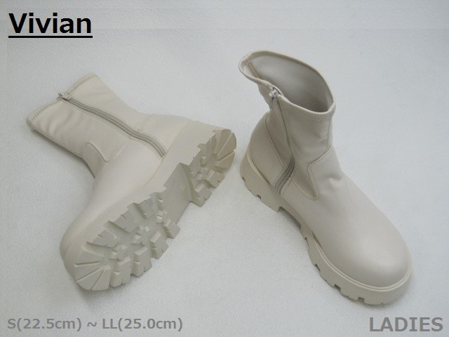 SALE / Vivian ヴィヴィアン LENA 4850 厚底 インヒール サイドファスナー付き ハーフ Laブーツ IV 22.5cm〜25.0cm(M/L表示展開)<58%OFF>