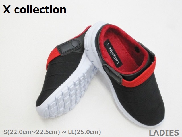SALE / Xcollection 5256 超軽量 2WAY ボア付き ぽかぽか バックバンド サボ Laシューズ 黒赤 22.0cm〜25.0cm<40%OFF>(M/L表示展開)