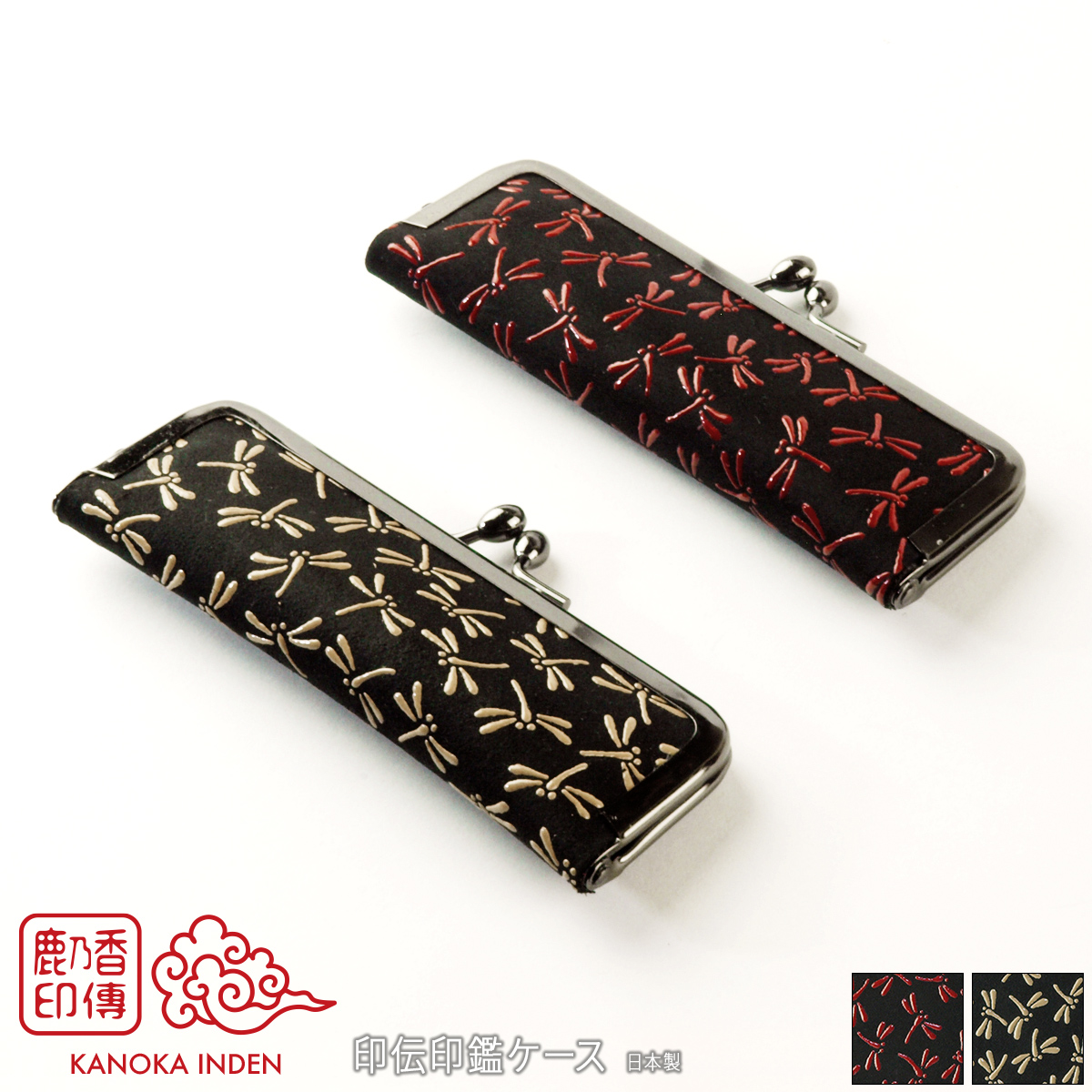 印伝 印鑑ケース 印傳 印鑑入れ がま口 本革 はんこ 日本製 コンパクト 鹿革 とんぼ 小桜 鹿乃香印傳 がま口工房mami