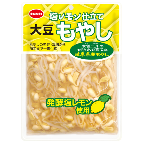 自社栽培の大豆もやしをレモン風味でさっぱりと味付けしました