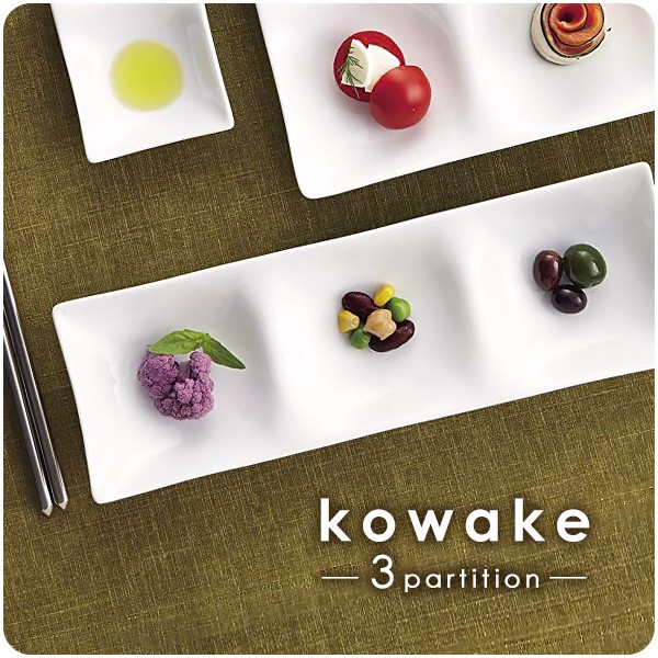 【kowake】三つ仕切りプレート 25.7cm 日本製 美濃焼 陶器 陶磁器 食器 洋食器 白い食器 深山 miyama コワケ 小分け 角皿 仕切り皿 仕切り 3つ 前菜皿 薬味皿 醤油皿 デザート皿 おつまみ皿 ランチプレート オードブル 高級白磁 ホワイト 真っ白 おしゃれ モダン カフェ 爆買