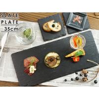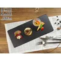 スレートプレート 35cm 長角 【 長方形 黒い食器 石 フラット 平 大皿 人気 角皿 おしゃれ クッション付き スレートボード 】 爆買