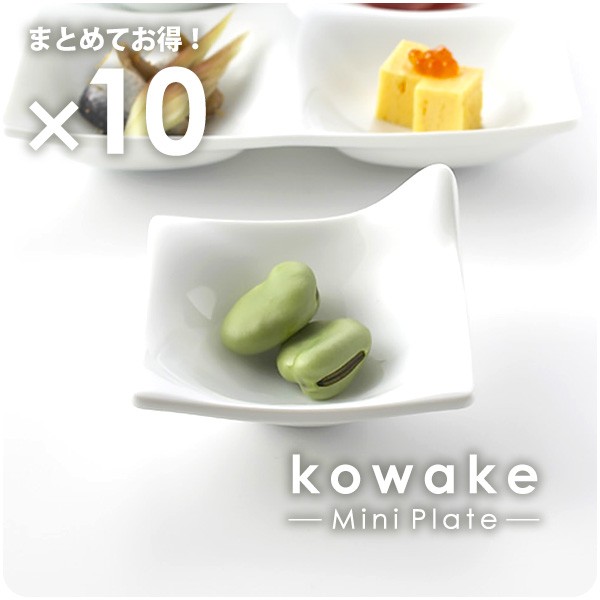 【10枚まとめて】【送料無料】【kowake】手付き小皿 8.7cm 日本製 美濃焼 陶器 陶磁器 食器 洋食器 白い食器 深山 miyama コワケ 小分け 角皿 小皿 プレート ミニプレート 前菜皿 薬味皿 醤油皿 デザート皿 おつまみ皿 離乳食 高級白磁 カフェ 業務用 爆買
