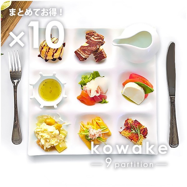 【10枚まとめて】【kowake】九つ仕切りプレート 25.7cm 日本製 美濃焼 陶器 洋食器 白い食器 深山 miyama コワケ 大皿 角皿 9つ 仕切り皿 ランチプレート ビュッフェ オードブル 高級白磁 カフェ 業務用 四角 正方形 食器 おしゃれ セット かわいい 食洗機 電子レンジ 対応 爆買