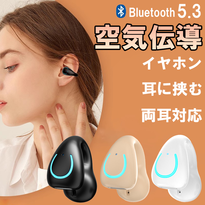 ワイヤレス イヤホン bluetooth 片耳 イヤホン bluetooth 5.3 スマホイヤホン 空気伝導 iPhone イヤフォン 通話 マイク ワイヤレス 右耳 左耳 生活 防水 高音質