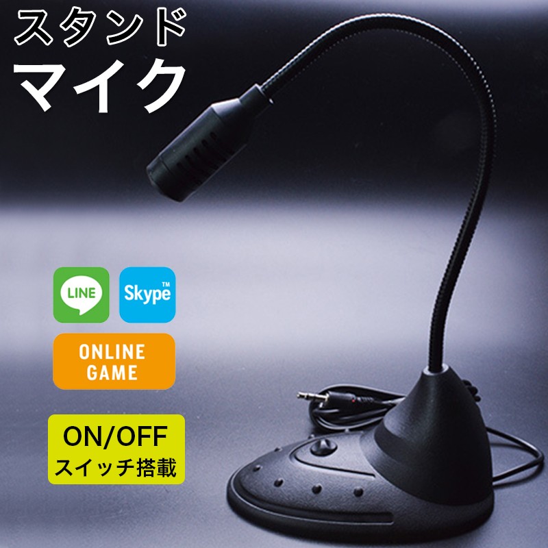 マイク スタンド式 ミュートスイッチ付き 卓上 マイクロフォン 角度調整 簡単接続 ゲーム ビデオ会議 パソコン PC 兼用 マイク