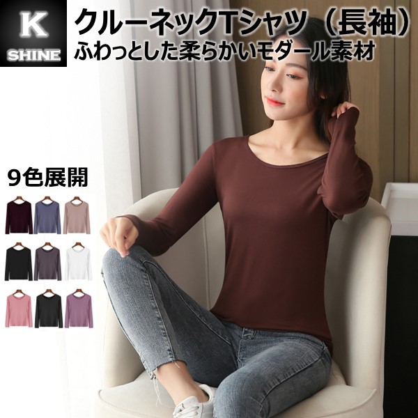【2点で10%クーポン】 Tシャツ クルーネック 長袖 レディース 無地 9色 インナー レーヨン 柔らかい 丸首 白 黒 [SMT(CN)(L)]