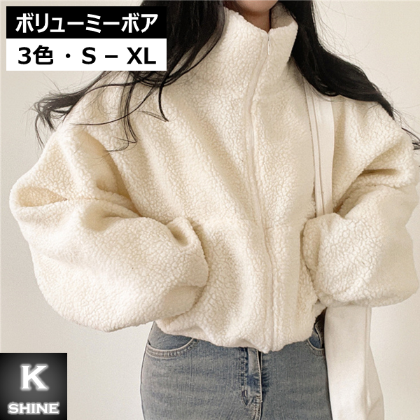【在庫処分】 ボアブルゾン ボアジャケット ショートブルゾン ショートジャケット レディース 暖かい 冬 足長効果 オーバーサイズ [ボアジップショートブルゾン]