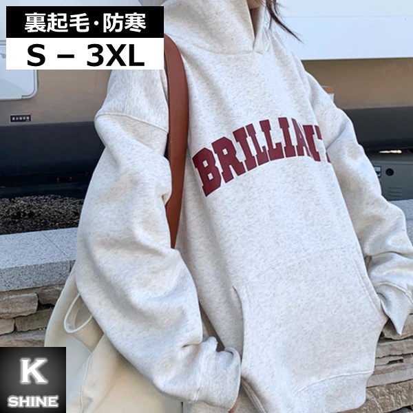 【在庫処分】 裏起毛 プルパーカ オーバーサイズ レディース 女性 暖かい 冬 パーカー オーバーサイズパーカー [裏起毛オーバーサイズプルパーカー(ロゴ)]