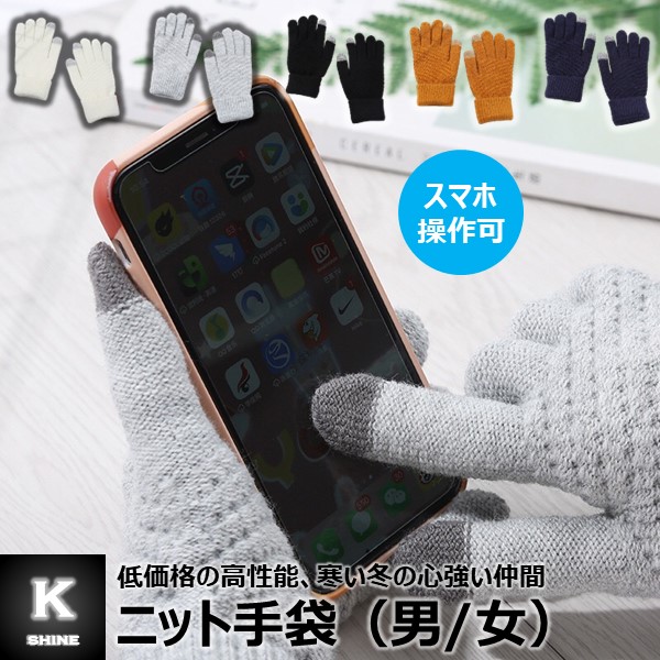 【在庫処分】 ニット 手袋 スマホ操作可 防寒 メンズ レディース 男性 女性 男女兼用 低価格 紺 ホワイト ブラック [ニットグローブ]