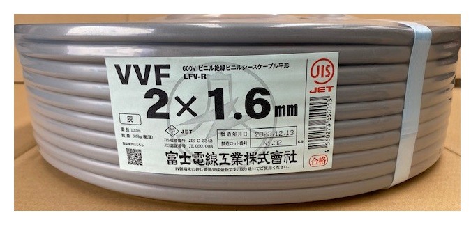富士電線VVF(VA)ケーブル1.6mm×2心 1巻法人様・個人事業主様・店舗様限定商品