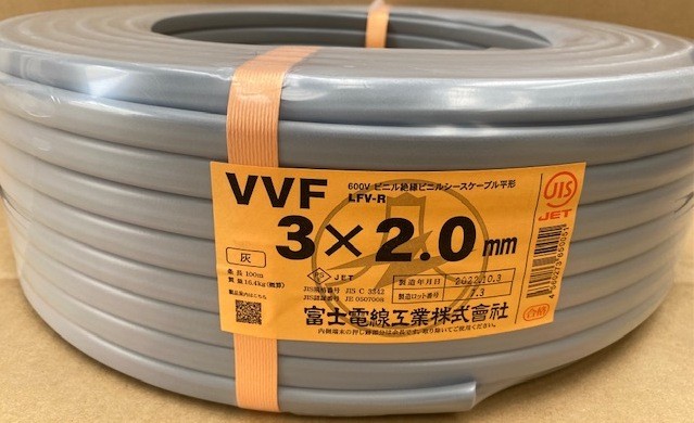 富士電線VVF(VA)ケーブル2.0mm×3心 1巻法人様・個人事業主様・店舗様限定商品
