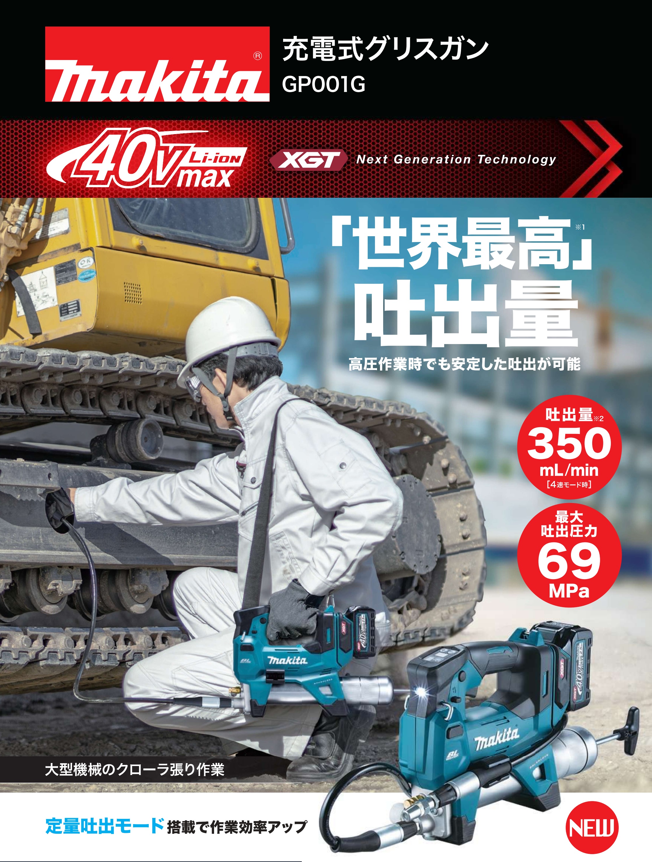 ■「世界最高」吐出量でグリスアップを効率化