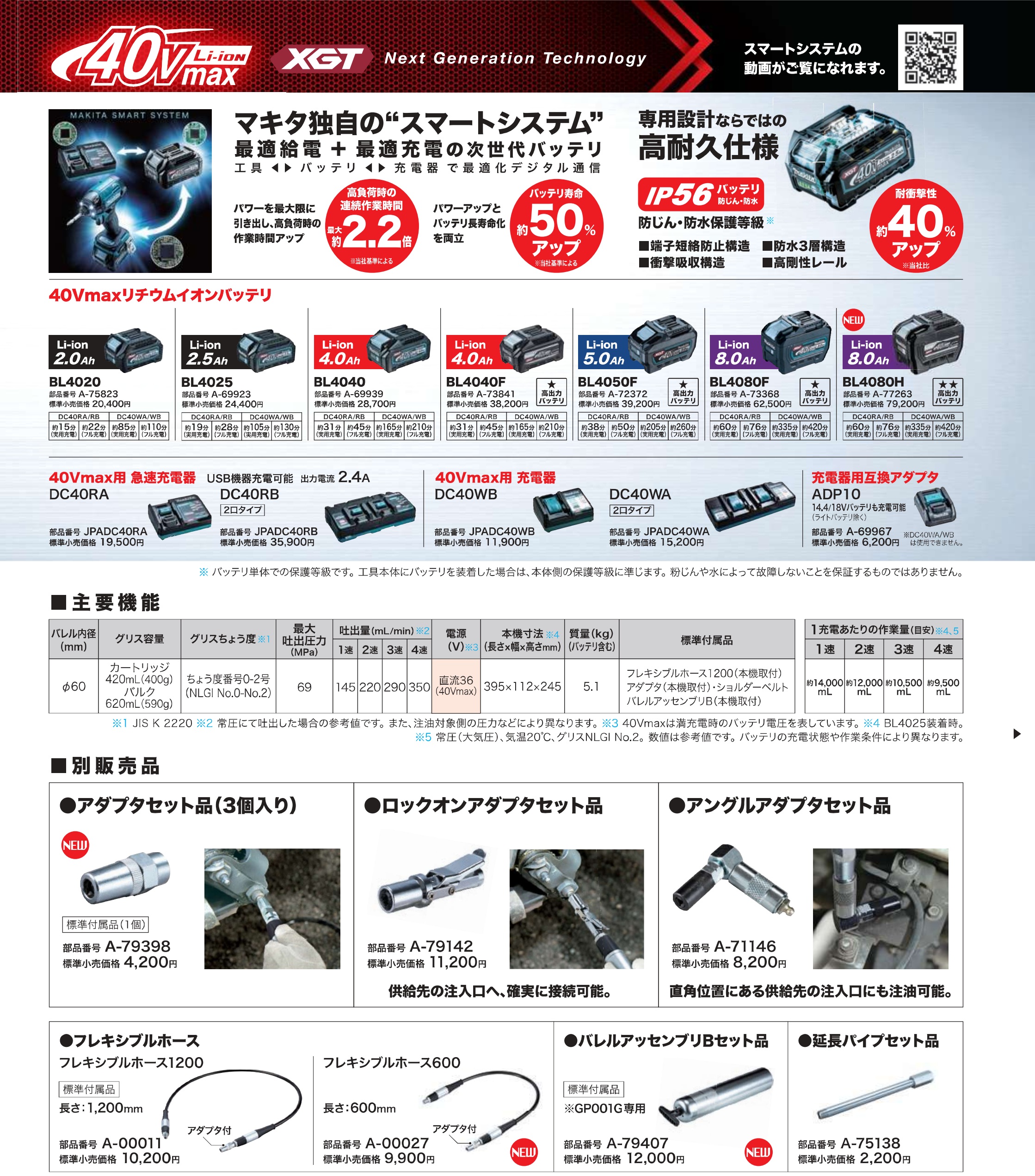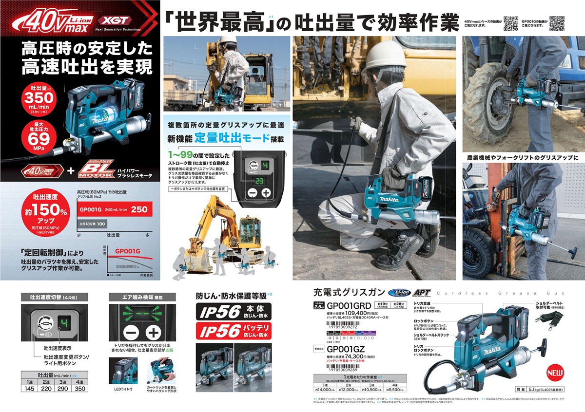 《マキタ正規店》 マキタ 充電式グリスガン 40.0V GP001G 本体のみ(バッテリ・充電器・ケース別売)