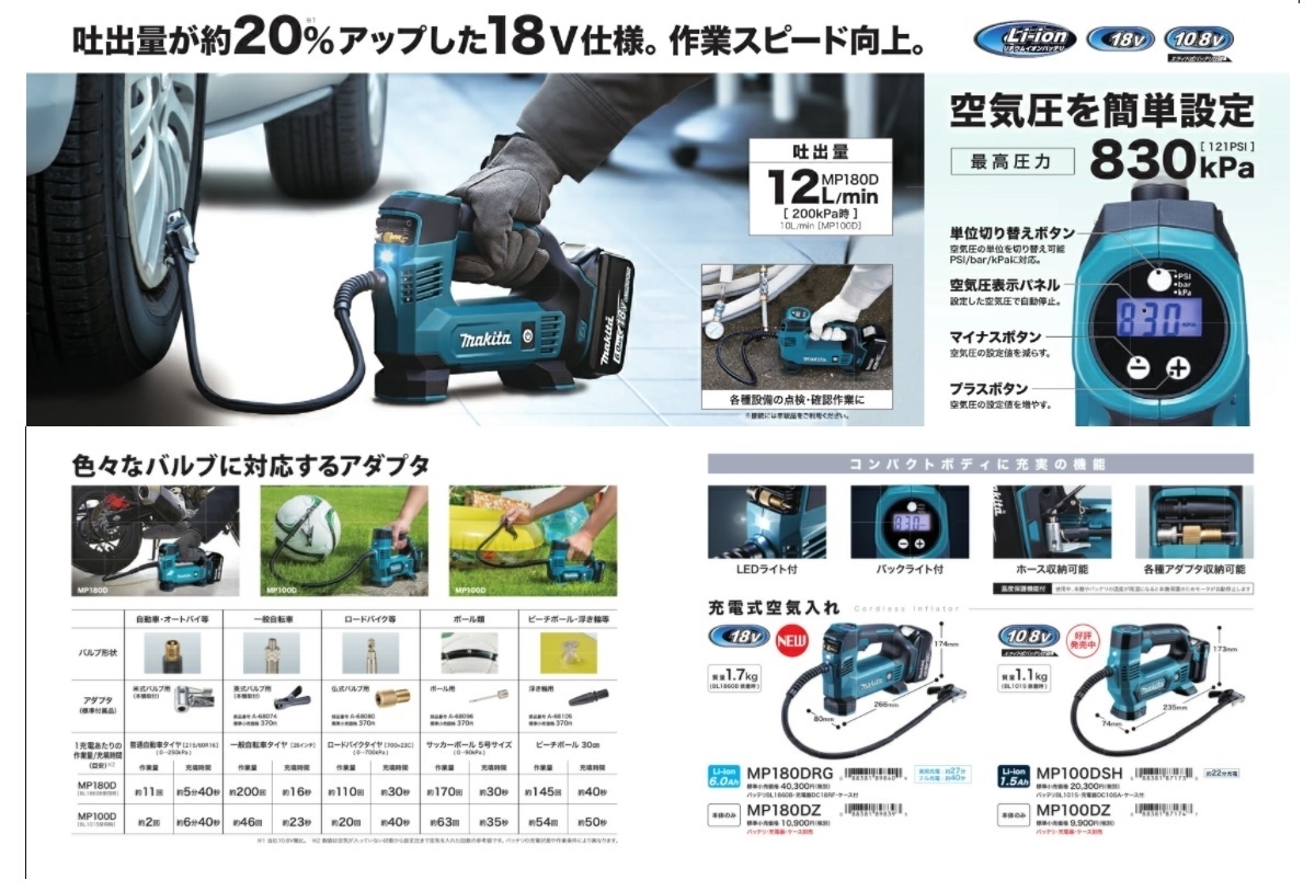 《マキタ正規店》 マキタ 充電式空気入れ MP180DZ (バッテリ・充電器・ケース別売)