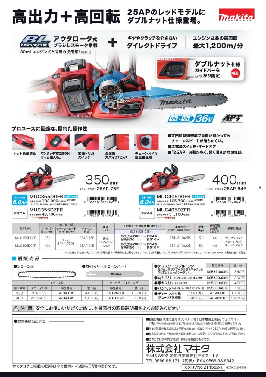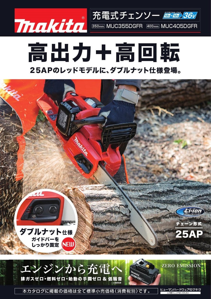 《マキタ正規店》 マキタ 充電式チェーンソー18V+18V→36V(6.0Ah) MUC405DGFR(セット品)バッテリ×2・充電器付
