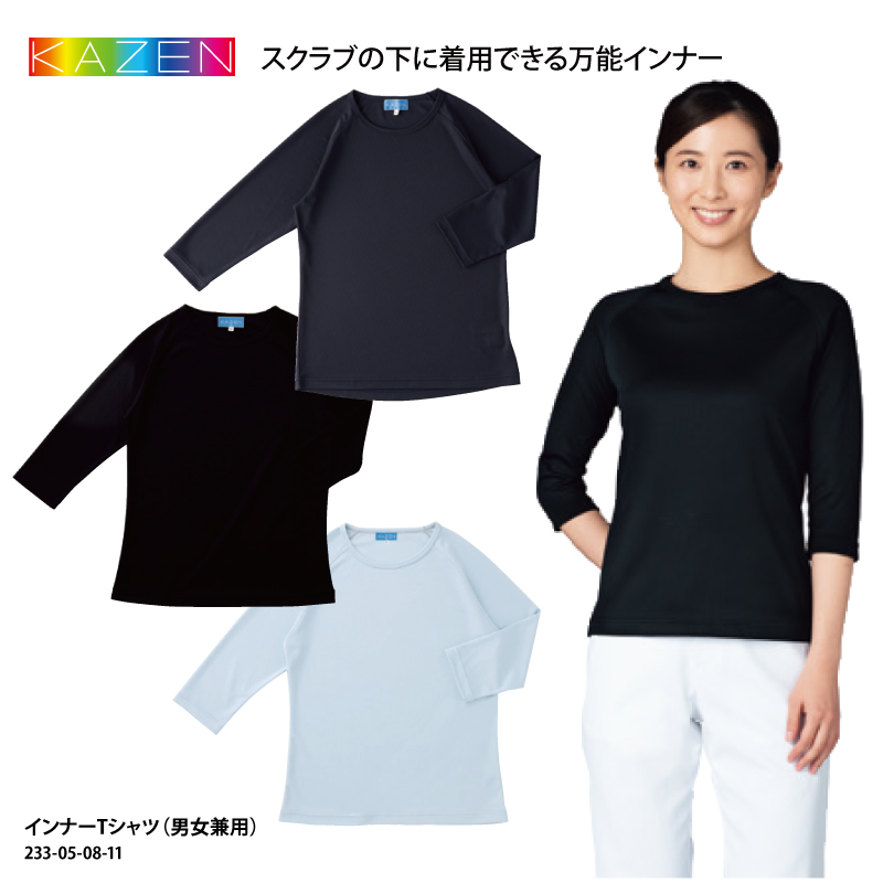 スクラブインナー アンダーウェア 医療 男女兼用 黒 白 グレー7分袖 オールシーズン ドライ 吸汗速乾 快適 看護 介護 メディカル 重ね着 日焼け カゼン 233