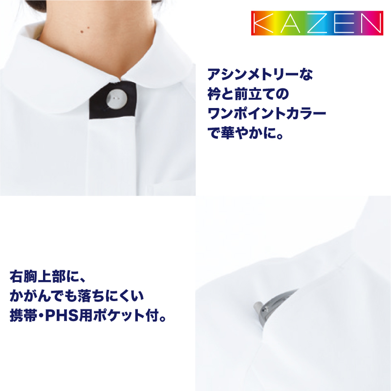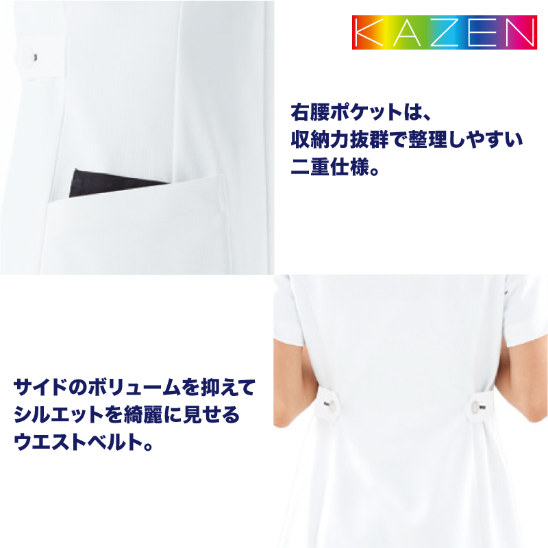 「SALE」ワンピース 半袖 白衣 ナース 医療 看護師 白 ネイビー メディカル 制服 大きいサイズ おしゃれ 吸汗 ストレッチ 快適 透け防止 KAZEN カゼン 049