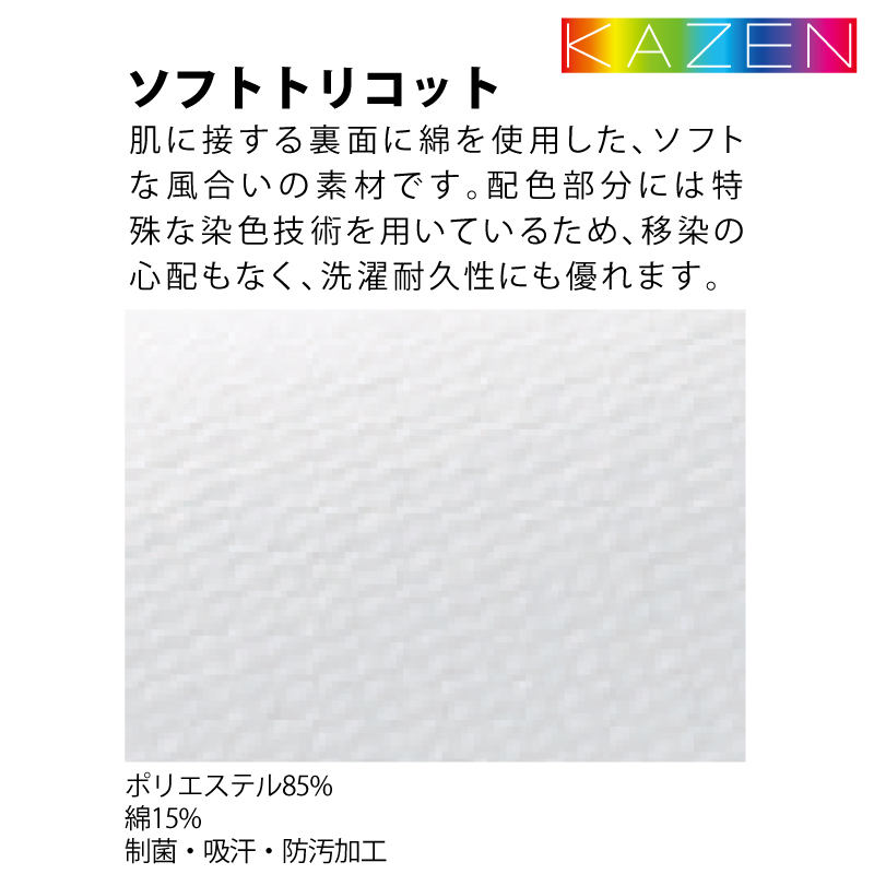 工業洗濯可、SEK(制菌加工)、透け防止、吸汗性、制電、ストレッチ、防汚
