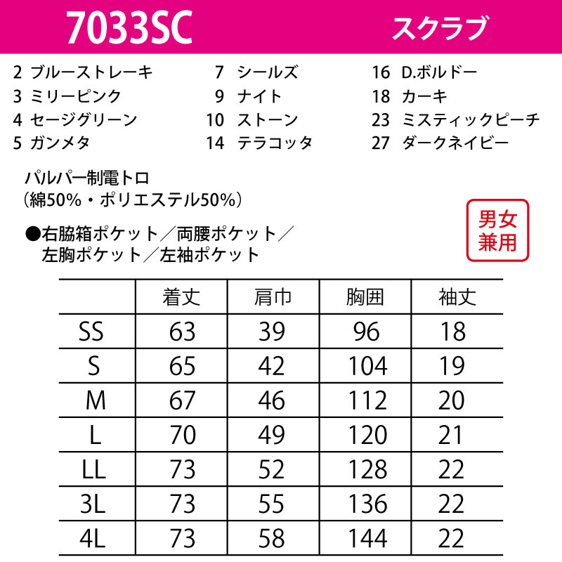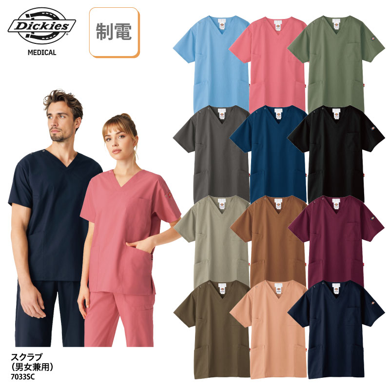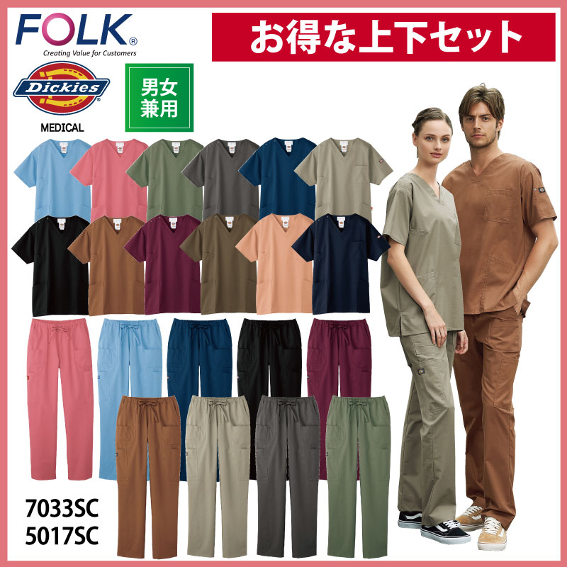 スクラブ 医療 男女兼用 白衣 介護 看護 制服 ストレッチ おしゃれ FOLK フォーク Dickies 男女兼用スクラブ 7033SC 爆買