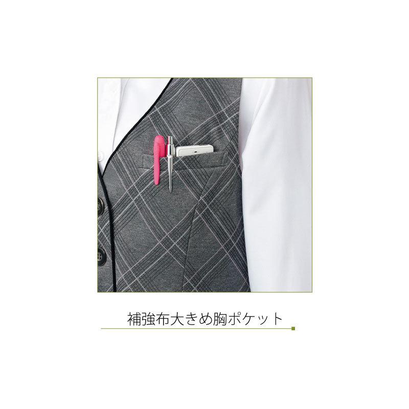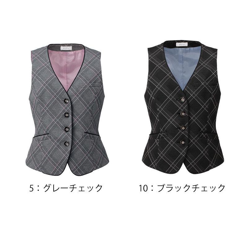 ベスト 事務服 オフィスウェア レディース 女性用 制服 チェック フェミニン 上品 可愛い ストレッチ 速乾 カーシーカシマ ENJOY EAV587 刺繍 プリント 爆買