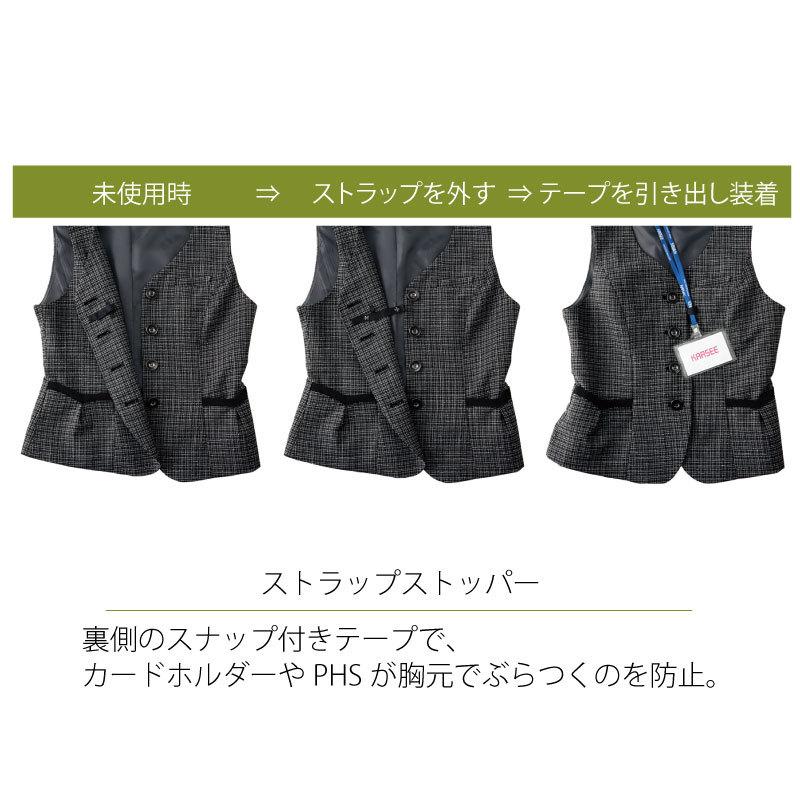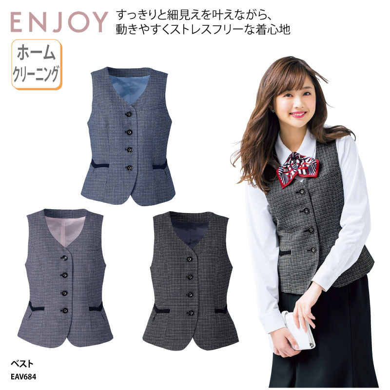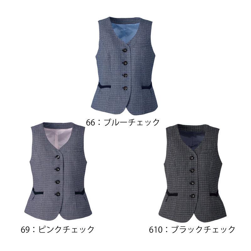 ベスト 事務服 オフィスウェア レディース 女性用 制服 チェック ピンク ブルー 黒 フェミニン 上品 可愛い カーシーカシマ ENJOY EAV684 刺繍 プリント