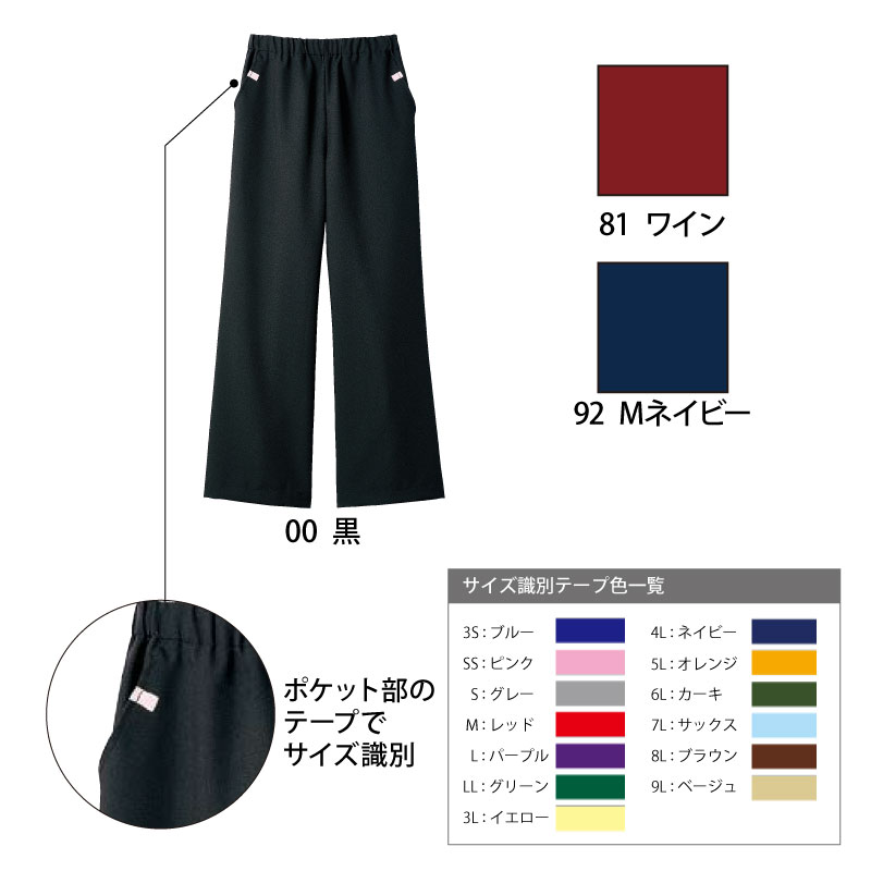 パンツ 男女兼用 ブラック ワイン ネイビー 医療 看護 医師 ナース 制電 退色防止 介護 快適 ストレート メディカル 動きやすい 住商モンブラン MB001