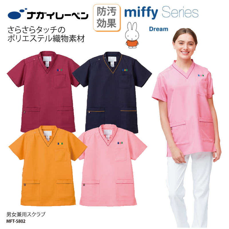 スクラブ ユニフォーム 兼用 女性用 男性用 シンプル 看護 整体 小児科 受付 メディカル メディカル ミッフィー キャラクター 人気 ナガイ MFT-5802