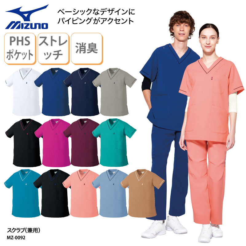 スクラブ 医療 白衣 ナース 大人気 売れ筋 MIZUNO 介護 ケアワーク 男女兼用 MZ-0092 刺繍 プリント
