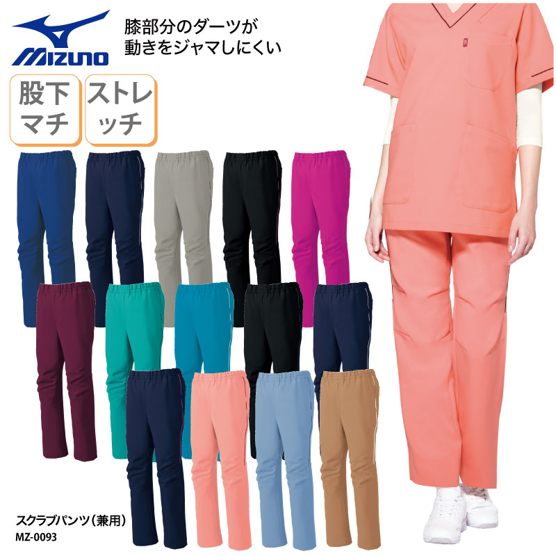 パンツ スクラブパンツ 医療用 ユニフォーム 人気 ミズノ 医療 白衣 男女兼用 看護師 介護 ケアワーク 総ゴム 通気性 MZ-0093 裾上げ