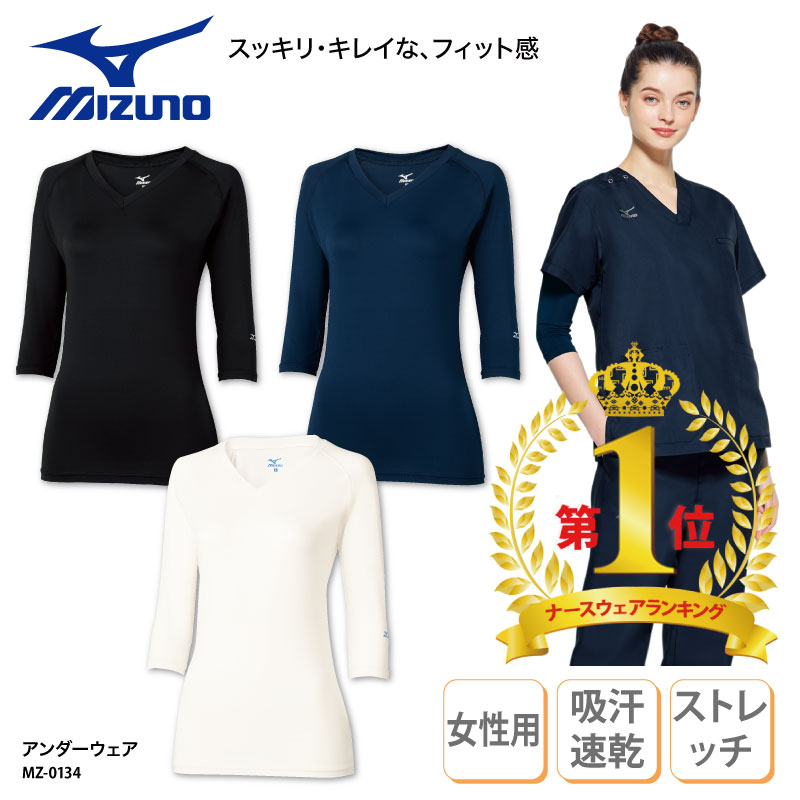 「送料280円」インナー アンダーウェア 人気 7分袖 スクラブ ナース 介護 白衣 レディス 吸汗速乾 ドライ オールシーズン 日焼け MIZUNO MZ-0134