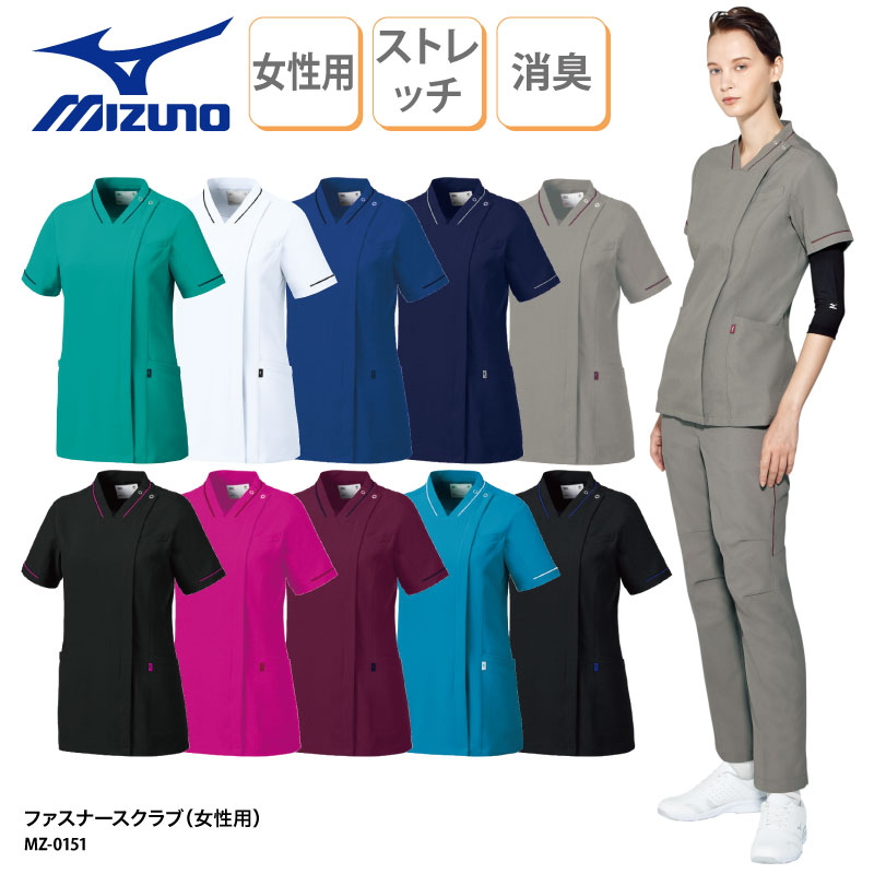 レディスファスナースクラブ 白衣 ユニフォーム ナース 整骨院 整形外科 病院 介護 MZ-0151 ジップスクラブ 脱ぎ着しやすい