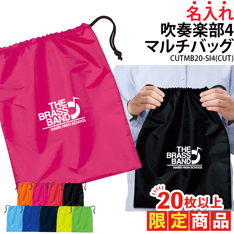 20枚以上購入限定価格バッグ 吹奏楽 ブラスバンド 巾着袋 シューズバッグ 靴入れ 着替え入れ 名入れ チーム名 お揃い 部活 記念品 オリジナル CUTMB20-SI4
