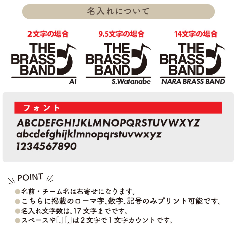 17文字以内でご希望に合わせた名入れをプリントいたします。