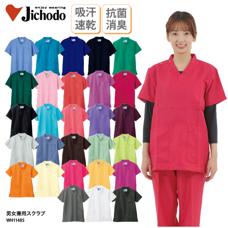 スクラブ 医療 白衣 格安 安い 男女兼用 シンプル 看護師 ナース 男女兼用 上衣 吸汗速乾 通気性 ホワイセル WH11485 刺繍 プリント