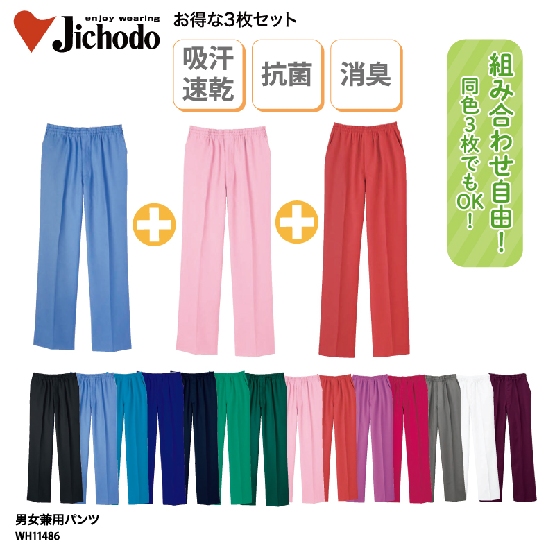 パンツ お得 3枚セット 医療 白衣 格安 レディース メンズ 看護師 メディカル 男女兼用 介護 動物病院 吸汗速乾 裾上げ ホワイセル WH11486-3