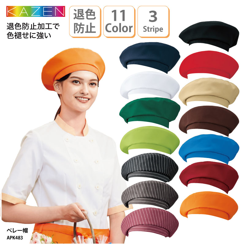 ベレー帽 帽子 販売 ユニフォーム 接客 異物混入 帽子 カフェ フード 飲食 食品 退色防止 男性 女性 メンズ レディス カゼン ゴム KAZEN APK483