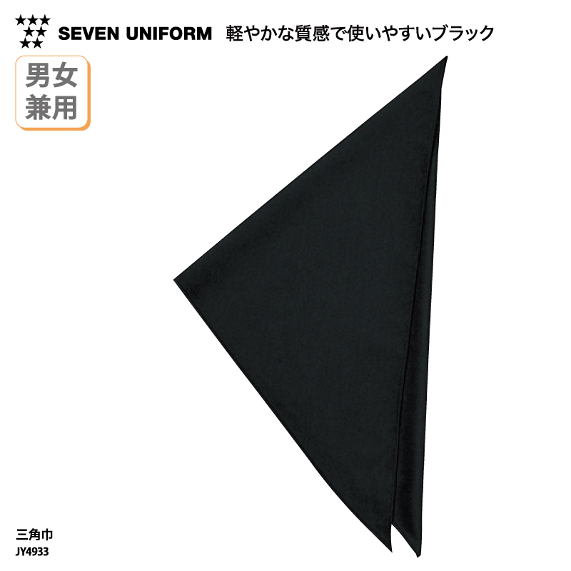 三角巾 バンダナ 安い おしゃれ 調理 キッチン 店員 黒 ブラック 無地 シンプル 居酒屋 厨房 飲食 男女兼用 セブンユニフォーム JY4933