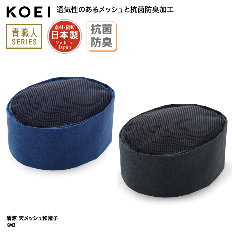 和帽子 天メッシュ 調理帽 和帽子 調理 日本製 メイドインジャパン 板前 職人 和食 男女兼用 抗菌防臭 メッシュ KOEI KM3