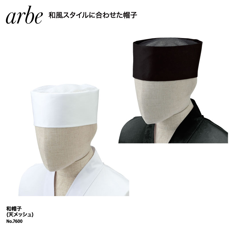 和帽子 天メッシュ 調理帽 和帽子 調理 ユニフォーム 白 ホワイト 黒 ブラック 板前 職人 和食 割烹 旅館 男女兼用 アルべ arbe No.7600