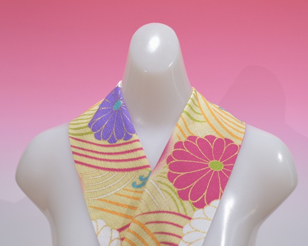 振袖用半衿 252 東レシルック 金色 菊・波模様 長尺 クリックポスト発送